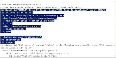 Ahhoz, hogy a modulok csak bizonyos oldalakon jelenjenek meg, egy kis HTML szerkesztésre van szükség. Első lépés az, hogy megkeresed azt a modult a HTML szerkesztése oldalon, melyen szeretnéd végrehajtani a módosítást. Mielőtt nekilátsz a keresésnek, jelöld be a Vezérlősablonok kibontása opciót. A keresést megkönnyítheti a böngésződ kereső funkciója (Ctrl+F) és az, ha a modult a címe alapján keresed. Ha nincs címe, érdemes adni neki addig, amíg elvégzed ezt a kis sablon módosítást. Miután megvan a modul vagy widget kódja, ami kb. így néz ki: